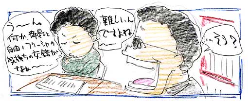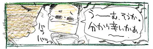 って事でした。何か“自分の書いたシナリオ面白い?”って皆に聞いてる様子がうかがえたのです。主にチーフ・ディレクターの長濱さんが大地さんのシナリオに突っ込む役で、